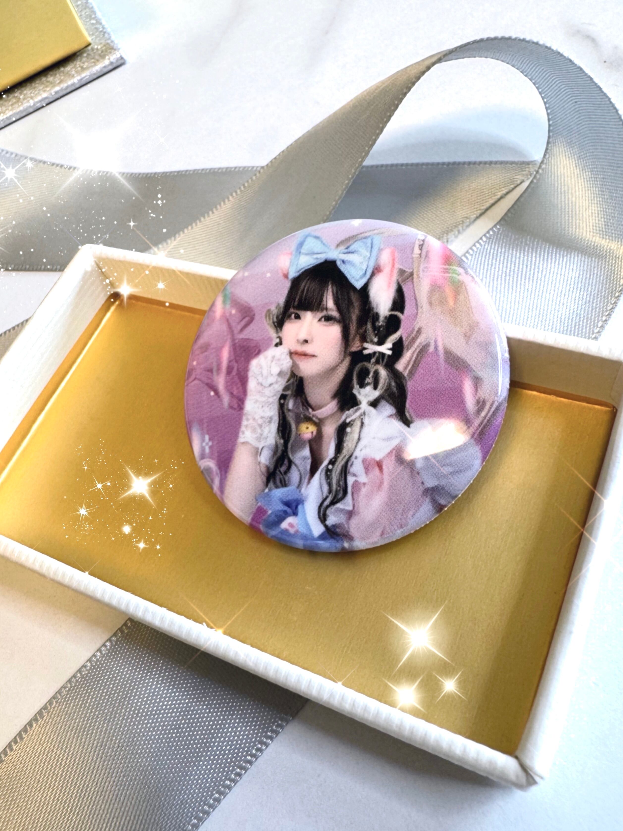 サンプル写真とるの下手くて画質悪いけど実物缶バッジそんなことないので安心してねん